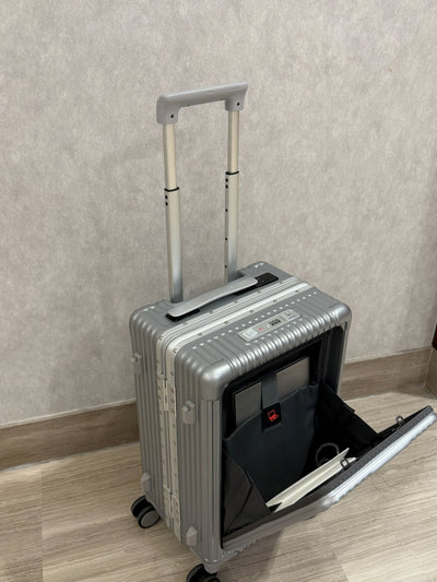 Stay powered on the go with dual USB and Type-C ports. Charge your phone, tablet, or laptop directly from your suitcase.